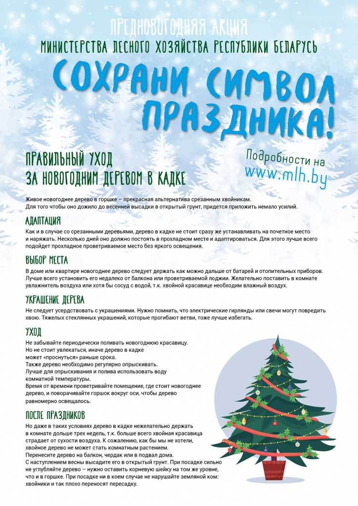 ГЛХУ «Пинский лесхоз» с 20.12.18 года производится продажа новогодних деревьев в кадках. Деревья можно приобрести в лесничествах, в лесхозе по адресу г Пинск, ул. Шубитидзе 28, а так же на рынке в г. Пинске на ул. Звездной и рынке в городе Иваново. По цене до 1 метра — 12.00 руб.; 1-2 метра — 15.00 руб.