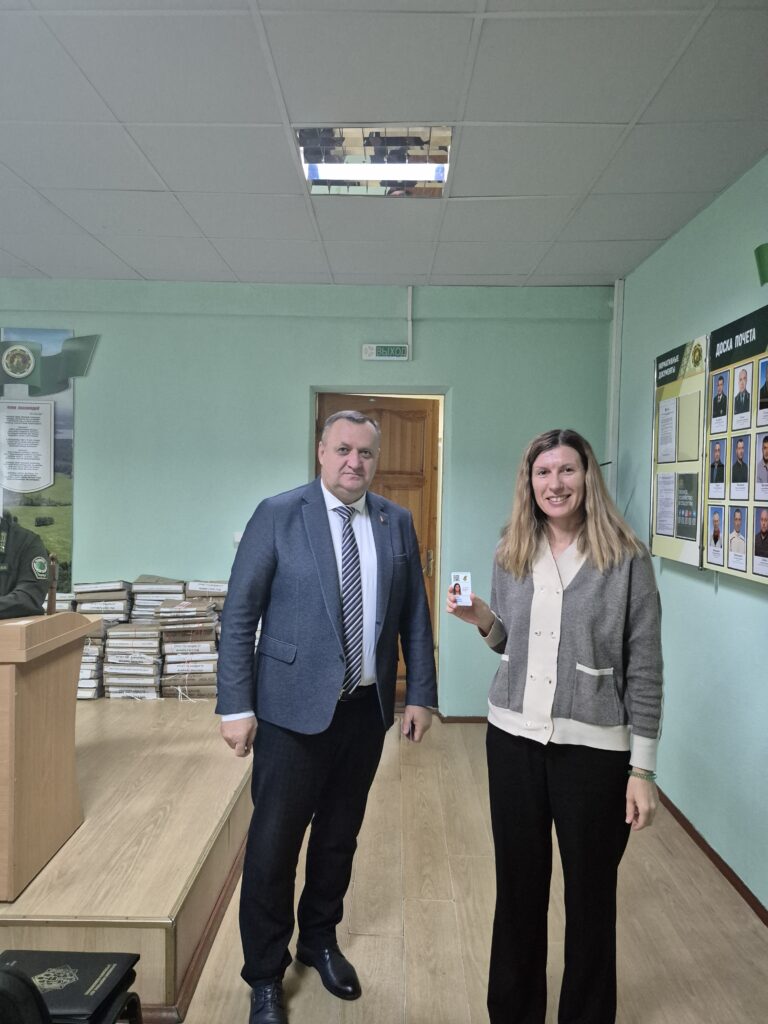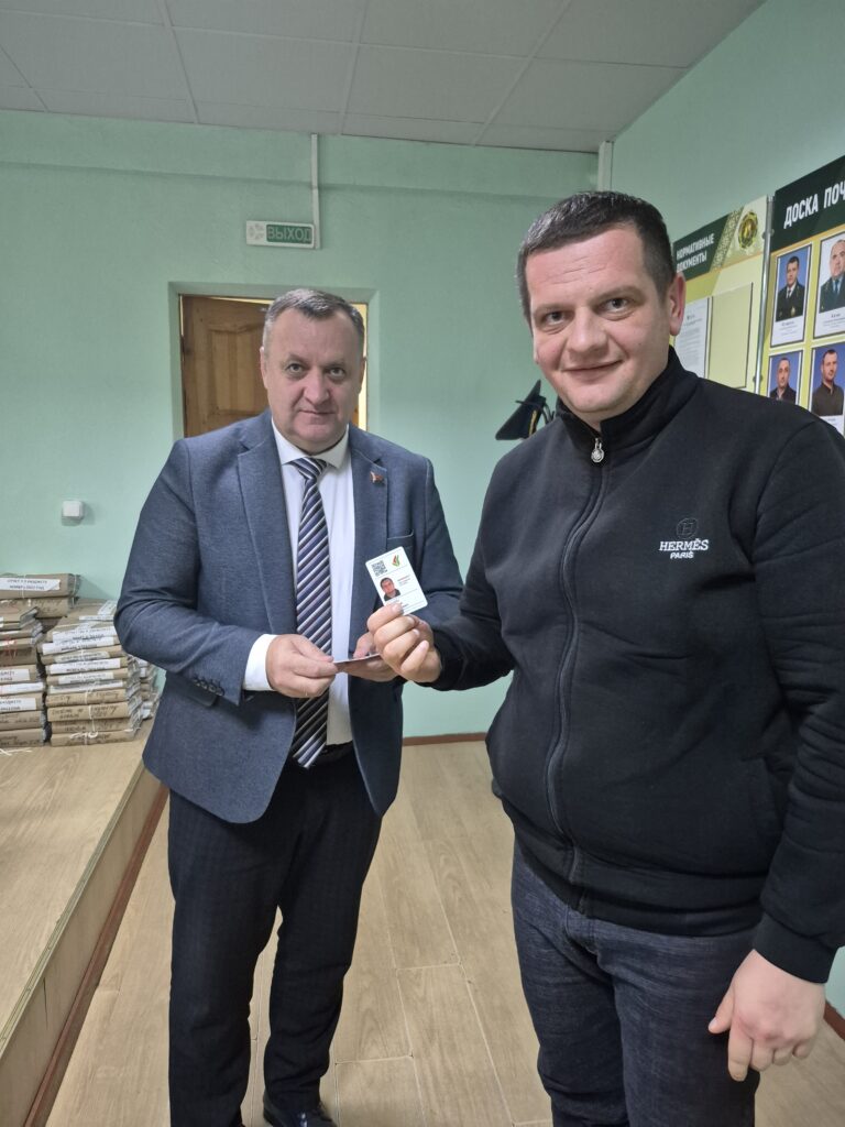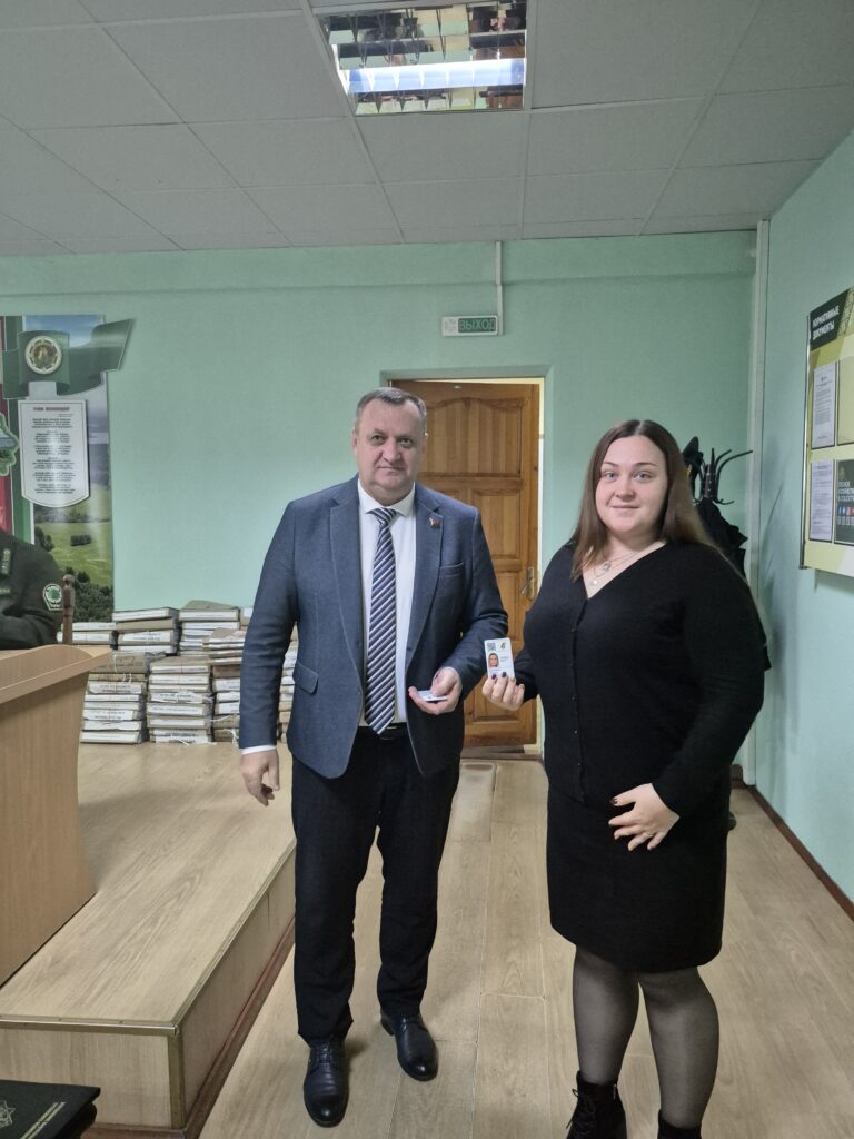 В завершении встречи Вячеслав Лозюк вручил партбилеты работникам лесхоза — новым членам Белорусской партии «Белая Русь».